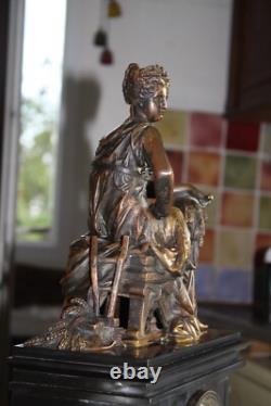 Légère usure de la patine sur les cheveux, (vue d'en face). Elle est en 2 parties, le bronze n'est pas démontable (pas d'accès).